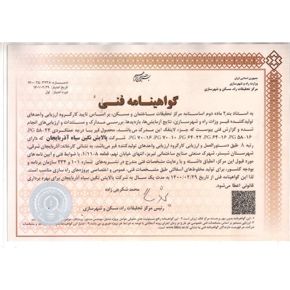 بحول و قوه الهی در سال 1393 تجارب و اهتمام مهندسین مجرب و کارآزموده به بار نشست و توفیق حاصل شد. مجموعه شرکت پالایش نگین سیاه آذربایجان در فاز اول توانست با استفاده از مخازن ذخیره محصول مجزا جهت توان بخشی به نیازهای بازار و معرف برای انواع گریدهای قیر آغاز به کار نموده و با کنترل محصول خود با دستگاههای دقیق و به روز در آزمایشگاه پیشرفته و مدرن شرکت، تولیدات خود را به بازار عرضه نماید؛ که طبق نمونه برداریهای انجام شده توسط اداره کل استاندارد استان آذربایجان شرقی و انجام آزمایشات درجه نفوذ و آزمایشات PG (عملکردی قیر) توسط مکانیک خاک استان آذربایجان شرقی و مکانیک خاک استان تهران با استاندارد 1-12505 و 3-12505 ایران و استانداردهای بینالمللی ASTM وAASHTO مربوط به قیرهای نفوذی و عملکردی مطابقت داشته و مورد تایید قرار گرفت. اوایل سال 95 برای این شرکت نقطه عطف دیگری بود زیرا با خریداری و آمادهسازی زمینی به مساحت 20 هزار متر مربع دیگر در کنار کارخانه اصلی، فاز دوم کارخانه در زمینه گسترش مخازن ذخیرهسازی 8000 تنی و ساخت و تجهیز مبدلهای نسل جدید بدون استفاده از حرارت مستقیم شعله و مخزن پیشگرم و ایجاد خطوط بستهبندی بشکهای و جامبوبک با همکاری مهندسین مجرب این کارخانه و مساعدت مسئولین مربوطه و مدیریت محترم کارخانه کلنگ زنی و اجرا گردید. طولی نکشید تا در اواخر تابستان سال 1395 فاز دوم این کارخانه نیز به لطف ایزد منان به بهره برداری کامل رسید.